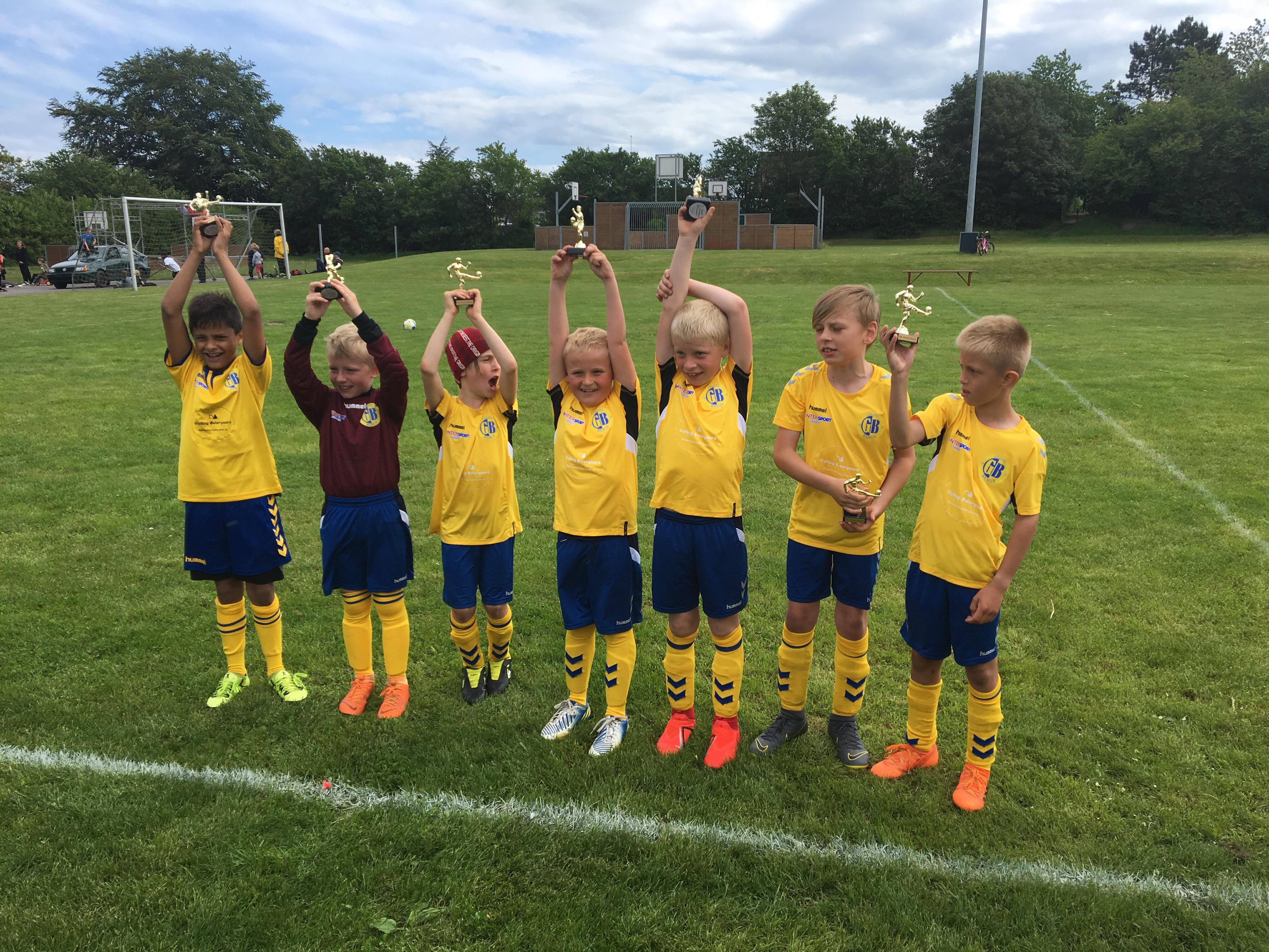 Hundslund IF havde sørget for en flot fodboldpokal til alle spillere. Gylling takker for invitationen og melder klar til at forsvare æren igen til næste år.